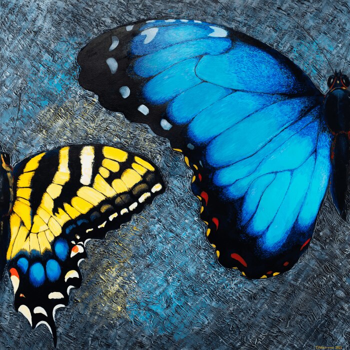Ms Koldunenko said she wanted her painting of two butterflies in the colours of the Ukrainian flag to represent the transformation Ukraine was undergoing.