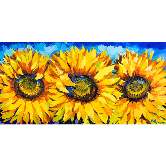 Her painting of three bold sunflowers is one of four artworks being sold next month, with the proceeds going to Habitat for Humanity.