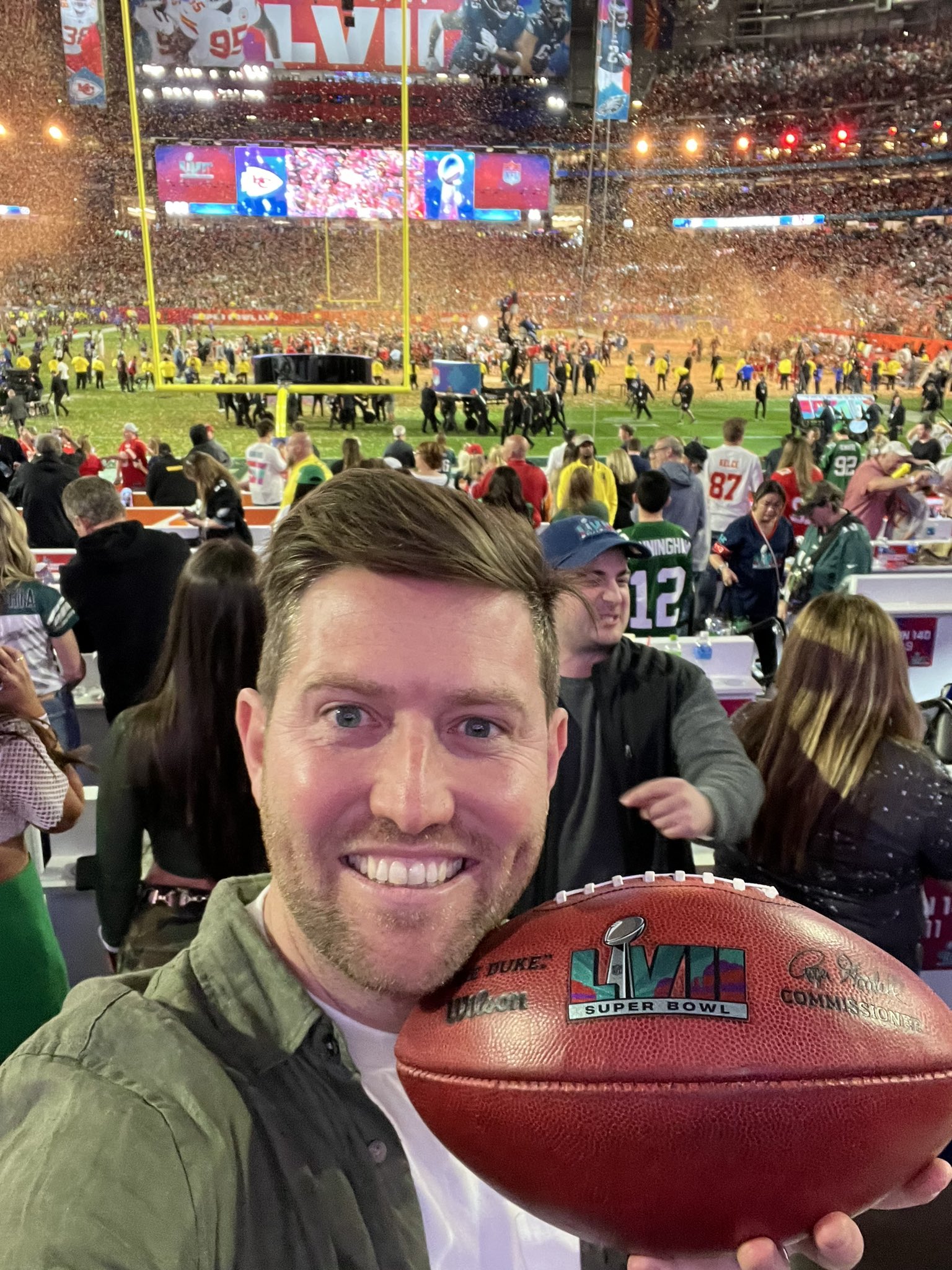 Eamonn Dixon started the day with plans to watch the NFL Super Bowl on TV from his home in San Francisco, but finished the day in the stadium holding the ball after the winning field goal.