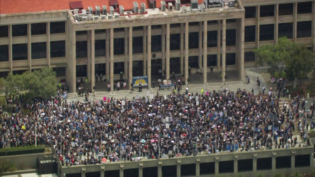 The rally drew a crowd of thousands of nurses, including some who had left work to attend, demanding a five per cent pay rise.