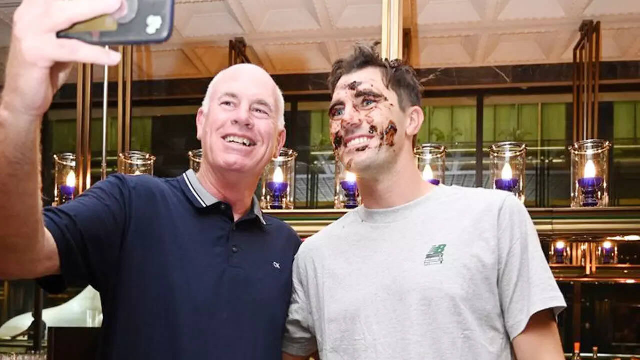 The official X (formerly Twitter) handle of SRH posted a picture of Cummins, with his face smeared with birthday cake, celebrating his birthday with his father Peter.