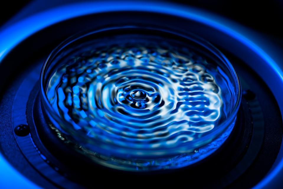 At idle speed, the Battista’s sound frequency is 54 Hz (down three octaves from 432 Hz), which is a pure and resonant signature base note. The purity of this frequency can be visualized by how it forms calm, organically symmetrical ripples on water. The effect of this frequency on the human body, with on average around 70% water, thus theoretically contributes to a sense of wellbeing.