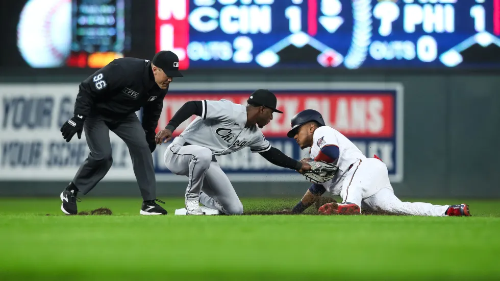 Remarkably, it was Anderson’s sixth error in three games that got the deciding sequence rolling, a throw past Abreu on a two-out infield single to Anderson’s right hit by Carlos Correa. Ryan Jeffers, who had doubled with two outs against Kendall Graveman, scored on the play, and when the ball got by Abreu, the first baseman threw toward home with Luis Arraez at third, but the ball eluded catcher Reese McGuire, who was well up the line, allowing Arraez to score the go-ahead run.