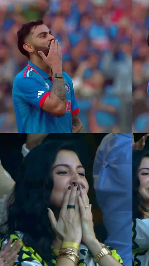 Virat Kohli was seen blowing kisses to Anushka Sharma after achieving his 50th century and breaking Sachin Tendulkar's World Cup record.ANI