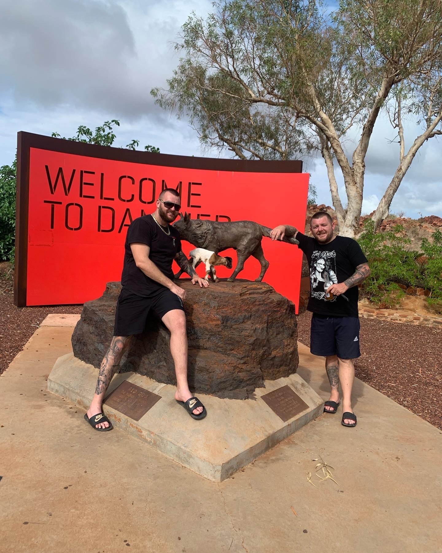 He is only two weeks old yet he has visited a pub, posed with the famous red dog statue in Dampier, frolicked in the waves at the beach, and watched pearl farming in action.