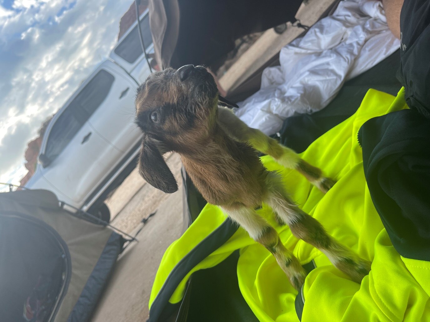 The group hurried the baby goat to the local vet.