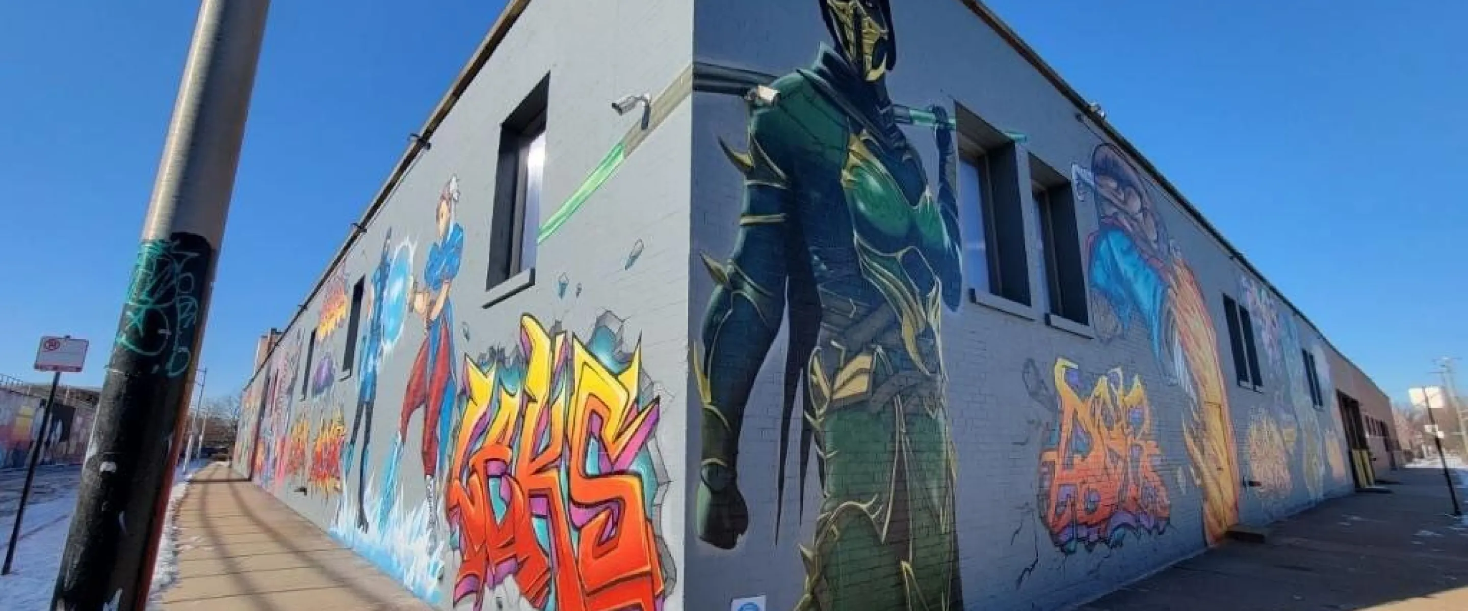 The artist who goes by Ali Six says he wanted his characters to seem like they’re popping out from the wall. He showed Scorpion from Mortal Kombat wrapping M. Bison from Street Fighter in his iconic chain.