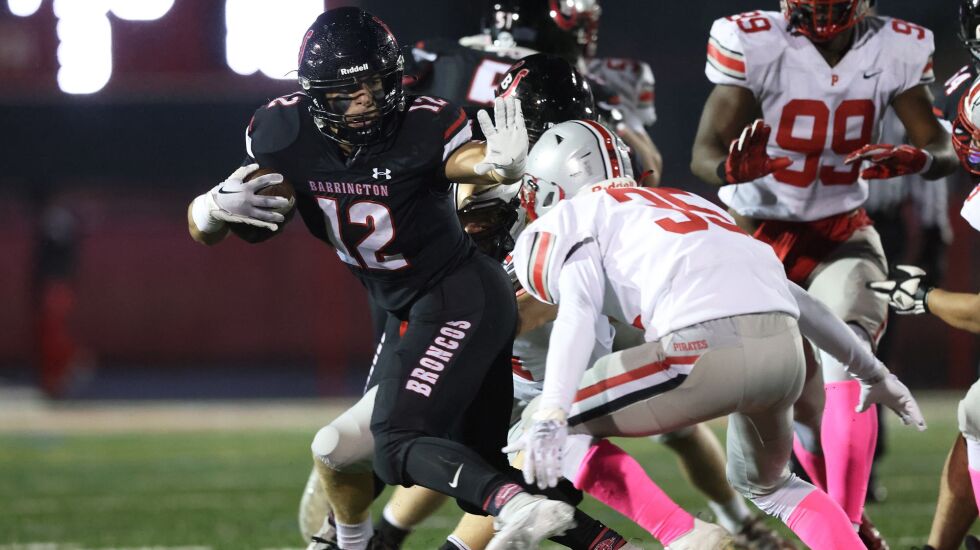 Barrington (8-0, 4-0) has passed all of those tests and will be a major factor in the Class 8A state playoffs. Few teams in the area can match the Broncos’ balance on offense. Joe Sanchez’s team appeared almost mistake-free against Palatine (5-3, 3-1).