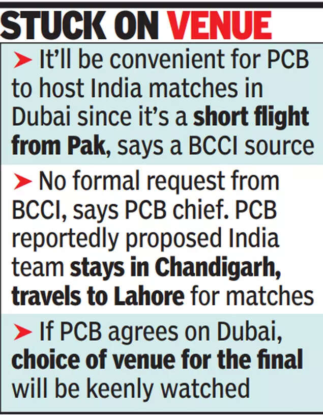 Reports emerged Friday that BCCI had informed Pakistan Cricket Board that it won't send the Indian team to Pakistan for the tournament. TOI understands BCCI has conveyed its wish to play its matches in Dubai. But PCB chief Mohsin Naqvi denied receiving any formal communication from BCCI.
