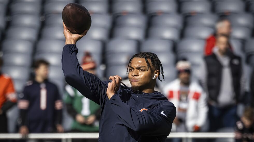 Fields’ grip strength is getting better and he’s feeling better, Eberflus said, though it’s not strong enough for him to throw a football. Fields won’t play Sunday, and won’t throw a football on the field hours before the game, either.