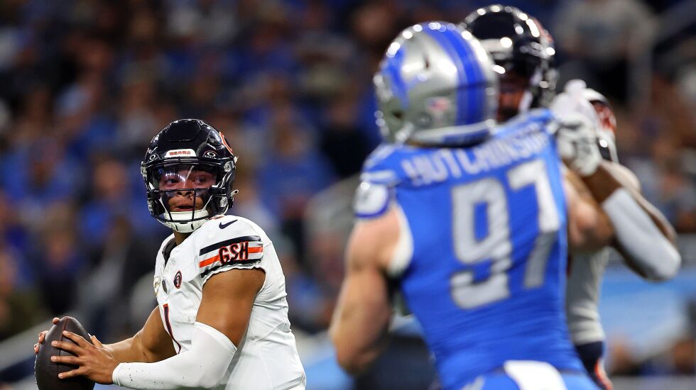 DETROIT — The Bears blew a double-digit lead in the fourth quarter for the second time this season, losing to the Lions 31-26 on Sunday as quarterback Justin Fields fumbled the ball out of the back of the end zone for a safety at the end.