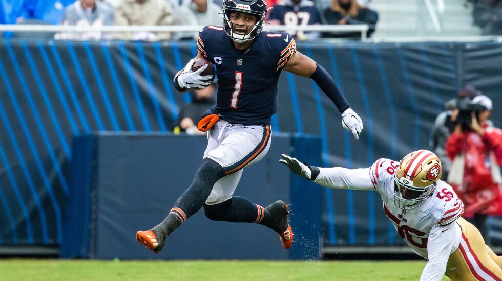 But that pain has faded, at least a little, and Mahomes’ name sounded pretty good as wide receiver Byron Pringle — a Chief the last three seasons — used it to compliment quarterback Justin Fields on his steady demeanor during the Bears’ late rally to win their season opener against the 49ers.