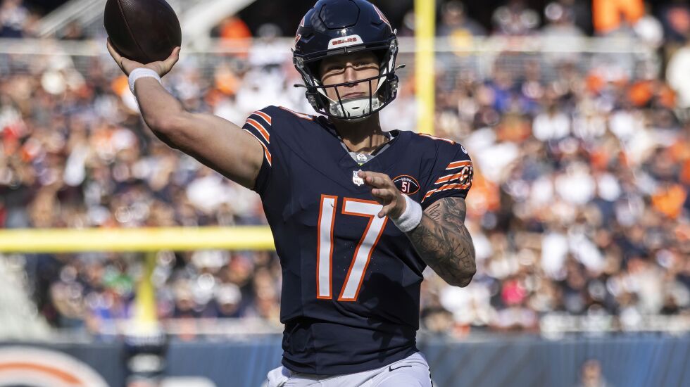 “When you look at the Raiders game, there was a lot of stuff that we had in but didn’t use,” tight end Cole Kmet said. “When you’re running the ball like we were and he’s able to stay ahead of the chains, there’s no reason to get crazy with it. When you’re absolutely dominating a front like that and he’s getting the ball out quick, we’ll do that all day.