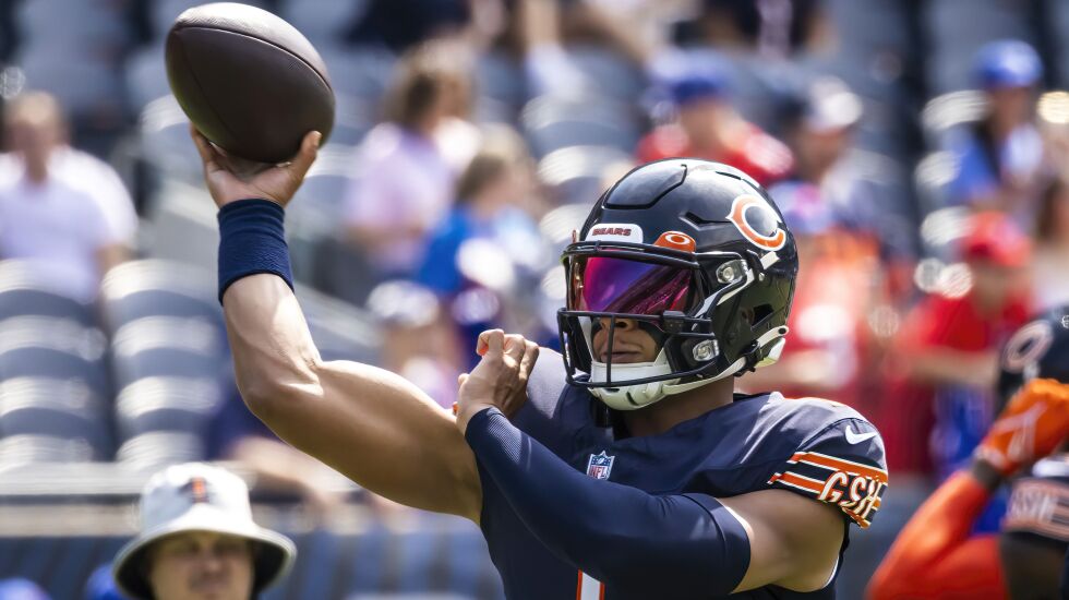 He left after the first play of the second quarter, a third-and-10 screen pass to running back D’Onta Foreman for 11 yards and a first down. Fields was popped in the chest by Bills defensive tackle Ed Oliver after he threw the pass did not seem bothered.