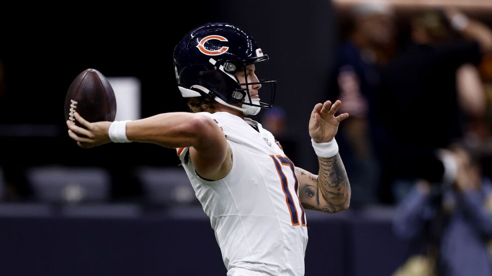 Bagent threw an interception on the next possession. Cornerback Paulson Adebo picked off his pass intended for Kmet to set the Saints up at the Bears’ 45-yard line.