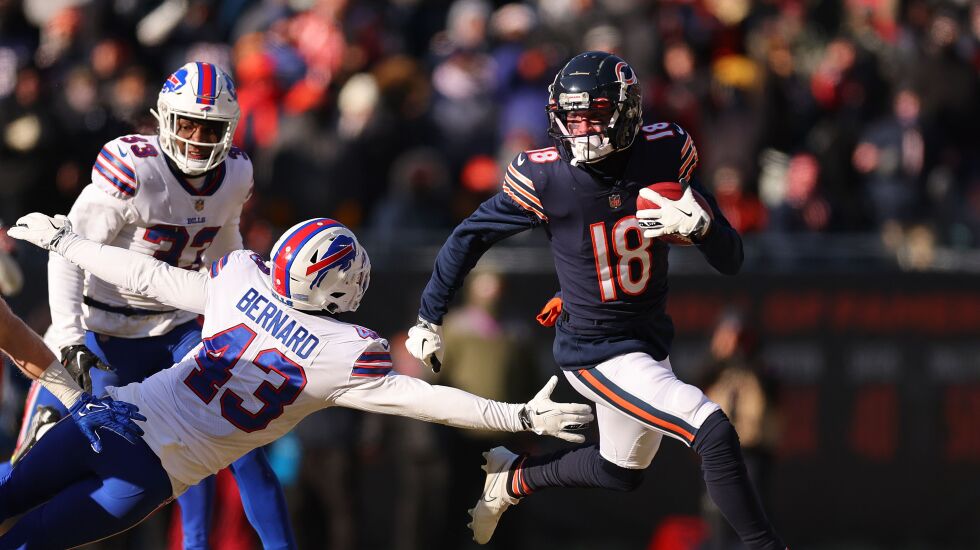 The move brings into clearer focus the Bears’ receiver room, which figures to feature six players on the 53-man roster: DJ Moore, Darnell Mooney, Chase Claypool, Tyler Scott, Equanimeous St. Brown and Jones.
