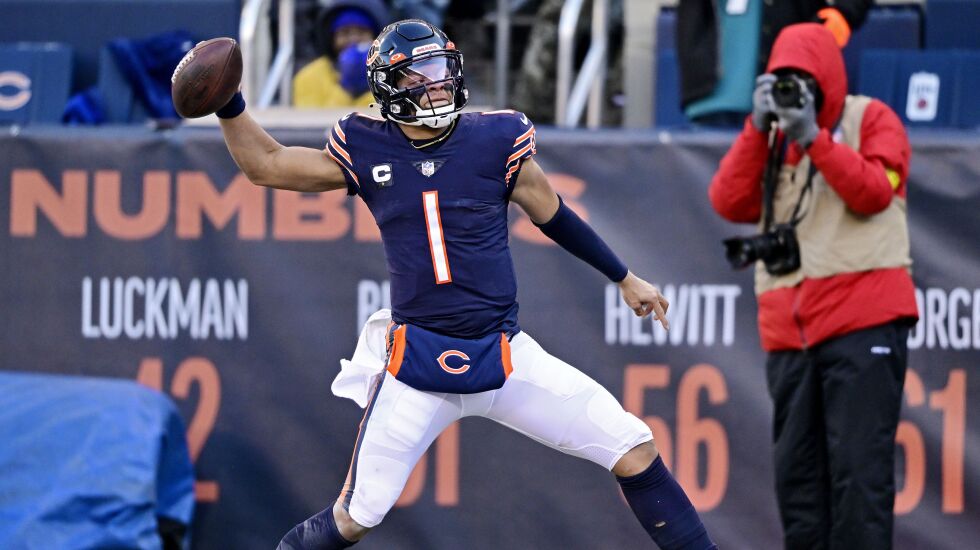 Fields reached two milestones Sunday, setting the Bears’ all-time single-season rushing record for a quarterback and becoming the third quarterback in NFL history to run for 1,000 yards.
