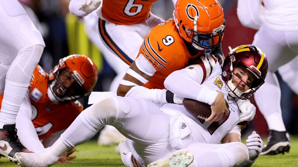 Brisker has three tackles for loss this season, and his sack of Commanders quarterback Carson Wentz on Oct. 13 was his second of the season. No Bears safety has had two sacks in a season since Al Afalava in 2009, and none has had more than two since Mike Brown and Mike Green in 2001.