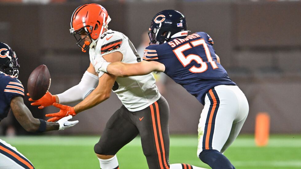 Sanborn, from Lake Zurich High School, made the team as an undrafted free agent out of Wisconsin and played 14 games, including six starts. He replaced Roquan Smith in the lineup when the Bears traded him to the Ravens midseason.