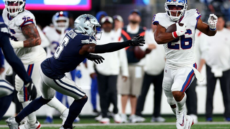 Two years after he torn his ACL in Week 2 against the Bears, Giants running back Saquon Barkley has regained his old form. The No. 2 overall pick of the 2018 draft has rushed for 317 yards and two touchdowns on 53 carries (6.0 avg.) — including a 68-yard run against the Titans and a 36-yard touchdown run against the Cowboys on Monday night.