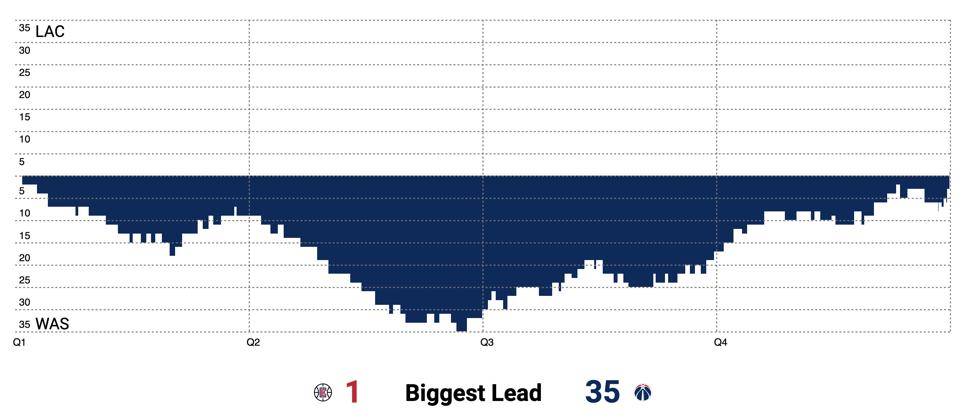 • 2021-22 Clippers: Down 35 vs. Washington, won by one.