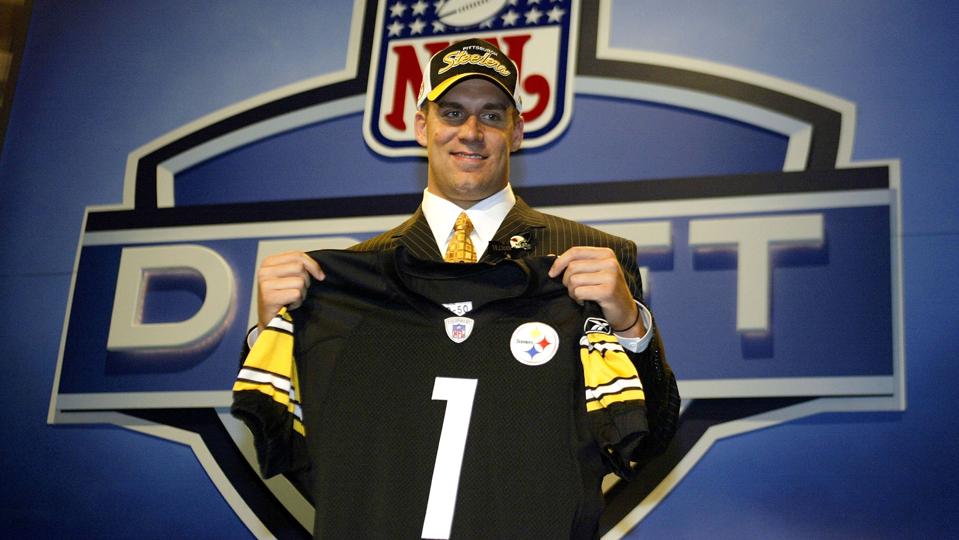 Quarterback Ben Roethlisberger after being selected 11th overall by the Pittsburgh Steelers during the 2004 NFL Draft on April 24, 2004 at Madison Square Garden in New York City. (Photo by Chris Trotman) Getty Images