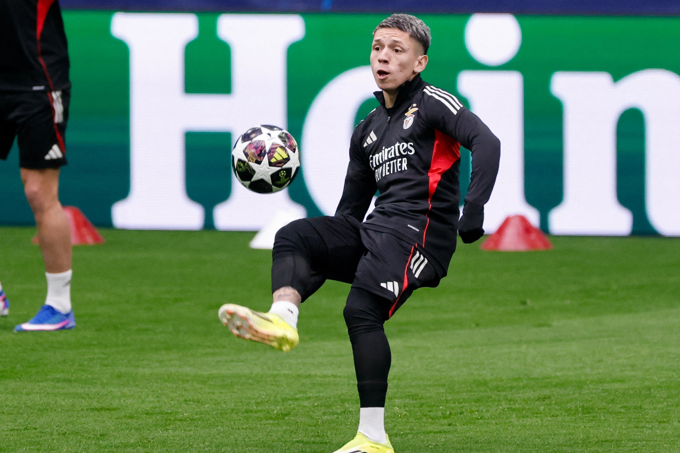 Benfica’s Gianluca Prestianni took part in a training session at the Bernabeu despite being banned from his side’s match against Real Madrid on Wednesday while Uefa investigates reports that the 20-year-old racially abused Vinicius Jr in last week’s first leg.