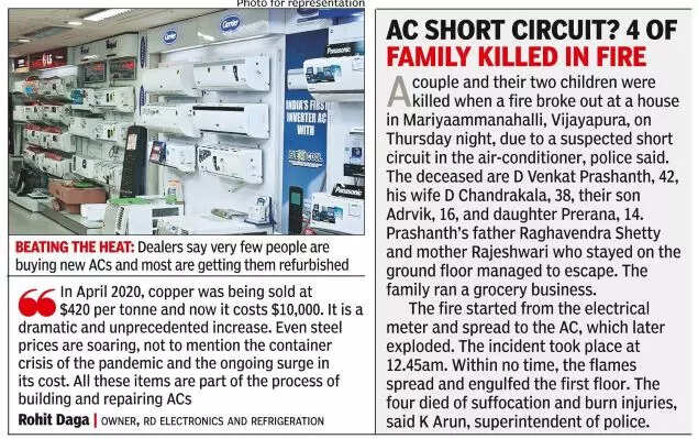 BENGALURU: As it gets hotter, many Bengalureans are looking to fix their old air conditioners by replacing the tubes, refilling gas or changing the compressors, only to find that prices of these services and spare parts have hit the roof.