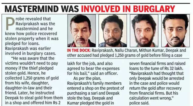 The plan was simple: One member would steal gold ornaments, pledge them with loan companies and raise lakhs of rupees. In the meantime, others would lodge a complaint and also alert police about the person who pledged the gold. While cops would arrest the thief and gloat over having solved the crime, the gang would not only get back their jewellery but also get to keep the loan amount.