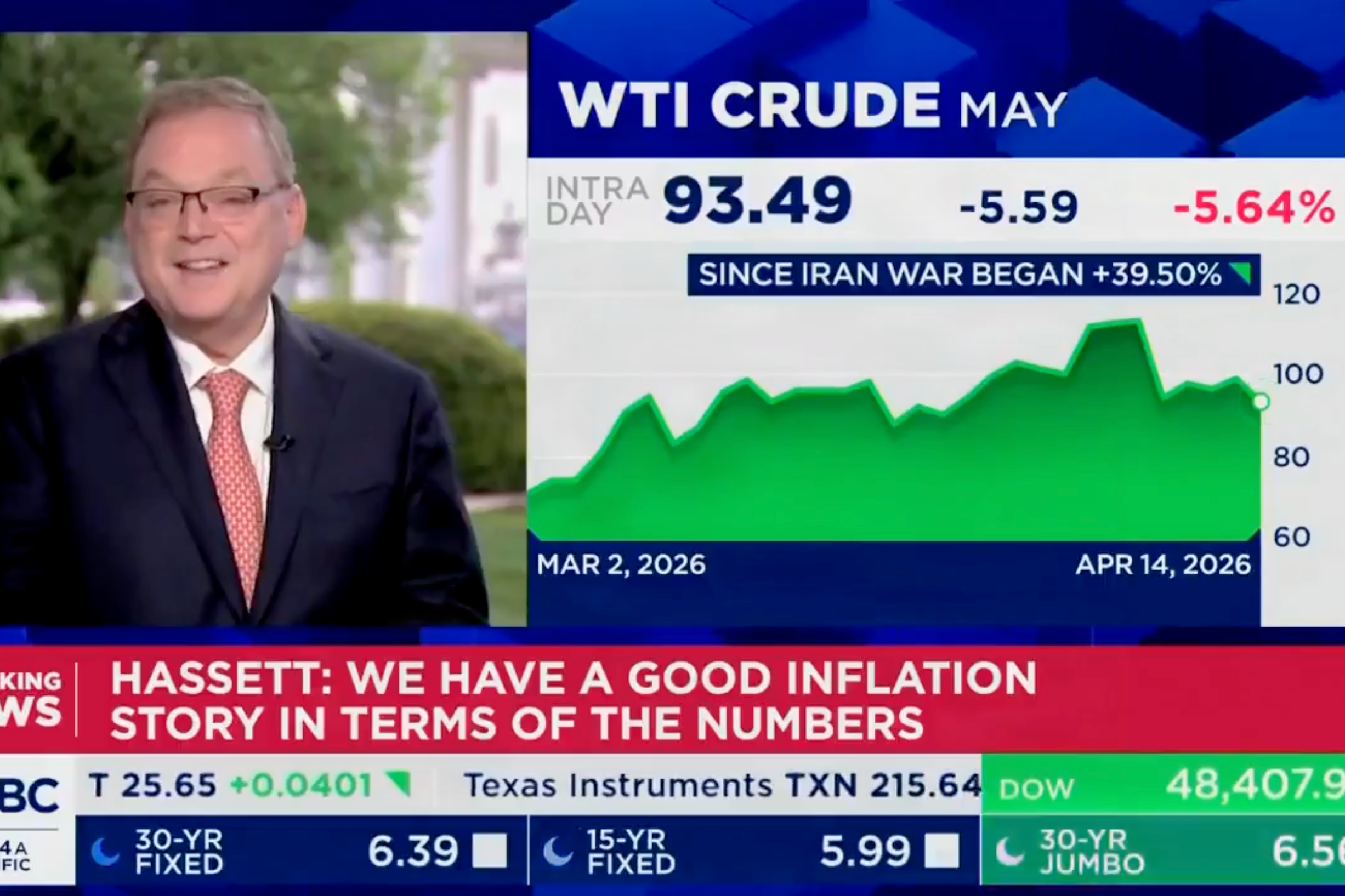 “Imagine if oil prices start going back down because the situation resolves itself somehow, then you could be looking at inflation close to zero,” Hassett told CNBC Tuesday, wishing away the six-week war in Iran.