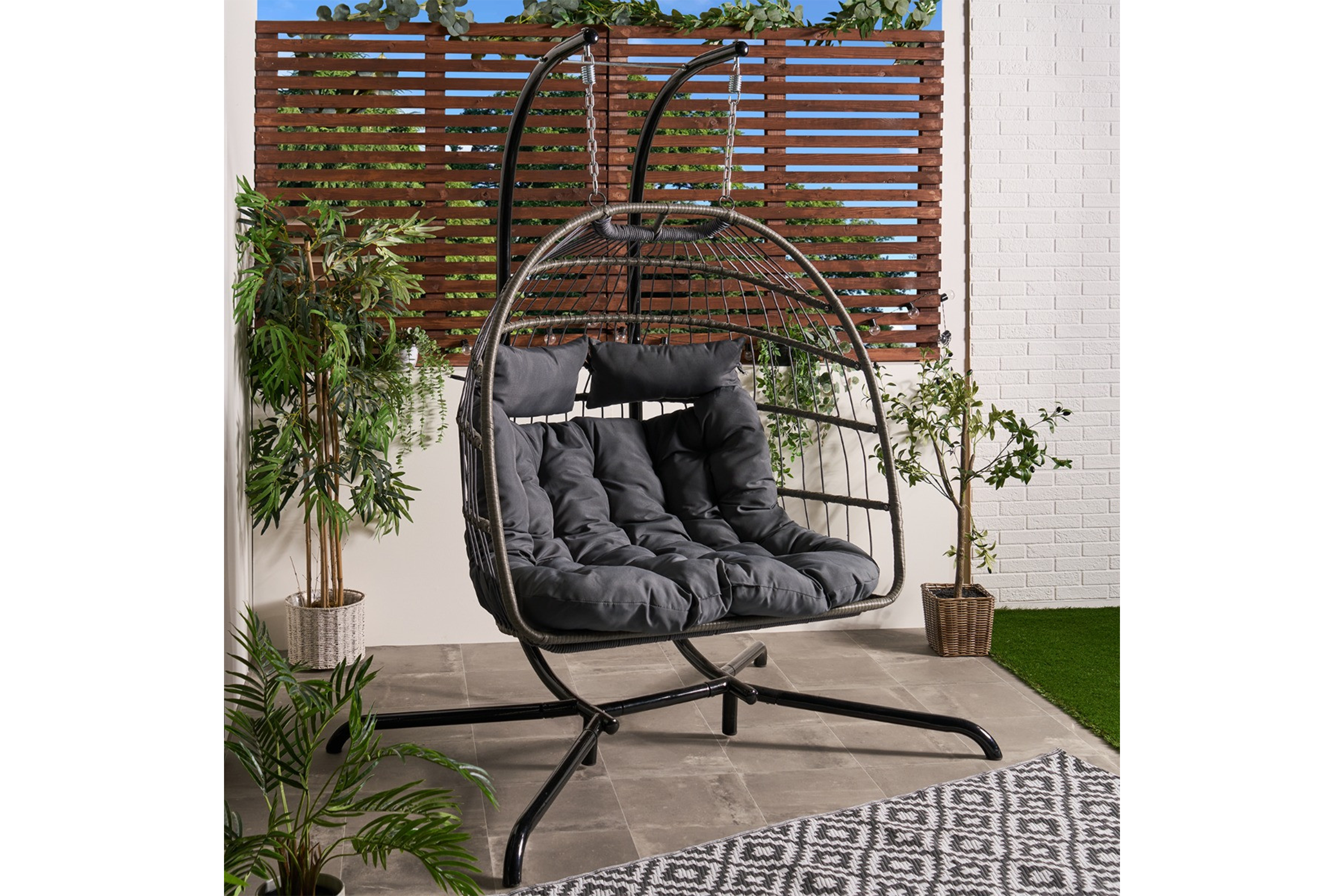 - Best double hanging egg chair – OHS foldable rattan double hanging egg chair: £264, Onlinehomeshop.com