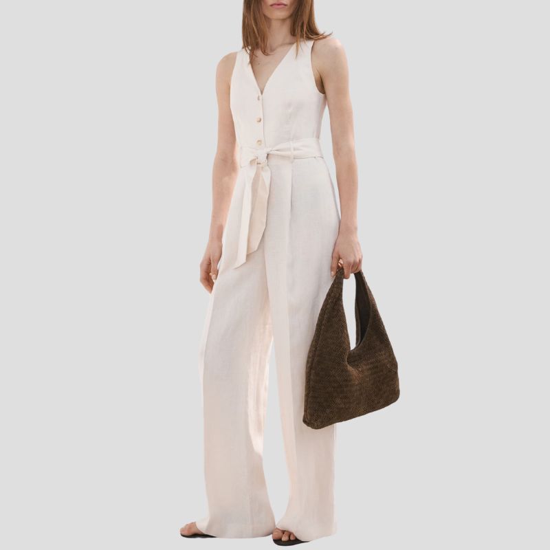 If you're looking for versatility in every sense, this navy linen jumpsuit is a great choice. It features a comfortable and flattering wide-leg design and is made from a 100% linen for a soft, breathable finish. You could easily style this with heeled boots for the evening, as well as wear it day-to-day with your best white trainers.