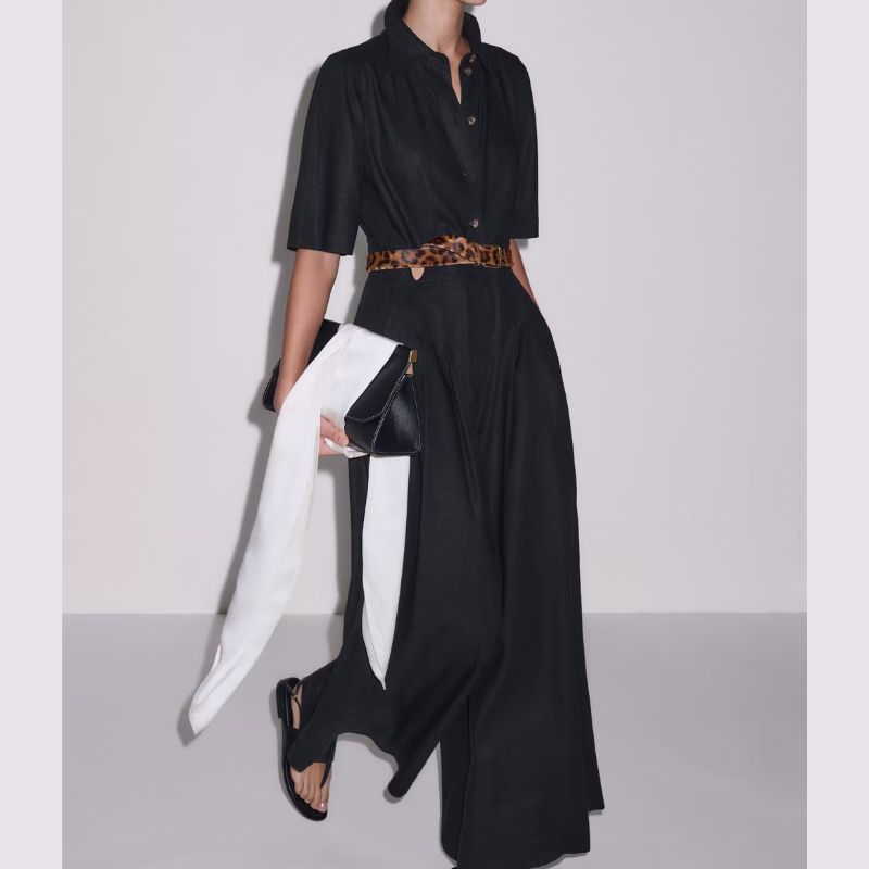 A black jumpsuit can work for a range of occasions, from smart-casual dress codes to fancy events or dinner reservations. This black jumpsuit has a tie-waist that will nip you in, and the relaxed, wide-leg trousers drape elegantly. It's made from crease-free linen for a breathable finish, and we love that you can swap out the waist belt for a statement style.
