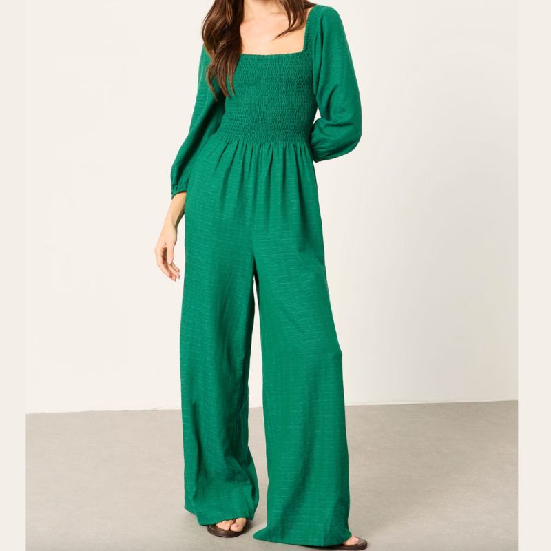 FatFace has a range of the best jumpsuits, which are suitable for travelling in, mainly due to their breathable materials. This cotton blend jumpsuit is designed with movement and comfort in mind. It features a stretchy shirred bodice and floaty wide-legs that make it a comfortable choice.