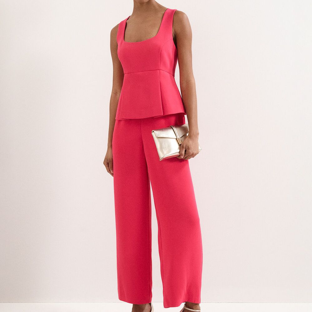 If you're heading to spring nuptials or wondering what to wear to a christening, this vibrant pink jumpsuit should be a top contender. It has a playful peplum bodice which creates the illusion of a two-piece, and features a curved barrel-leg design. Pair with silver slingback heels and a clutch, and you're good to go.