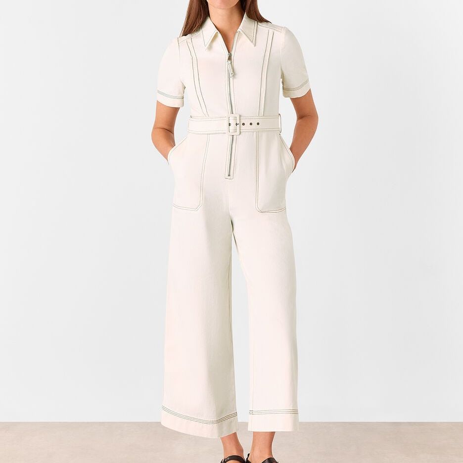 This white jumpsuit is firmly on my wishlist. It features a smart belted waist, short sleeves and a utility feel. This is the kind of jumpsuit you can reach for on days you're searching "what should I wear today?" It's versatile enough to be dressed up with heeled sandals and casual enough to work with your most comfortable trainers.