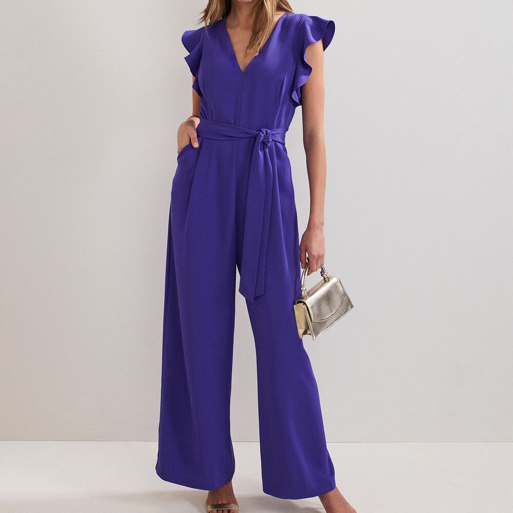Newly added to the Phase Eight sale, we predict that this purple jumpsuit will sell out fast. It features ruffled shoulder detailing, a V-neck design, a striking purple hue and a flattering belt. This is perfect for spring or summer nuptials, just add strappy heels in metallic shades such as gold or silver.