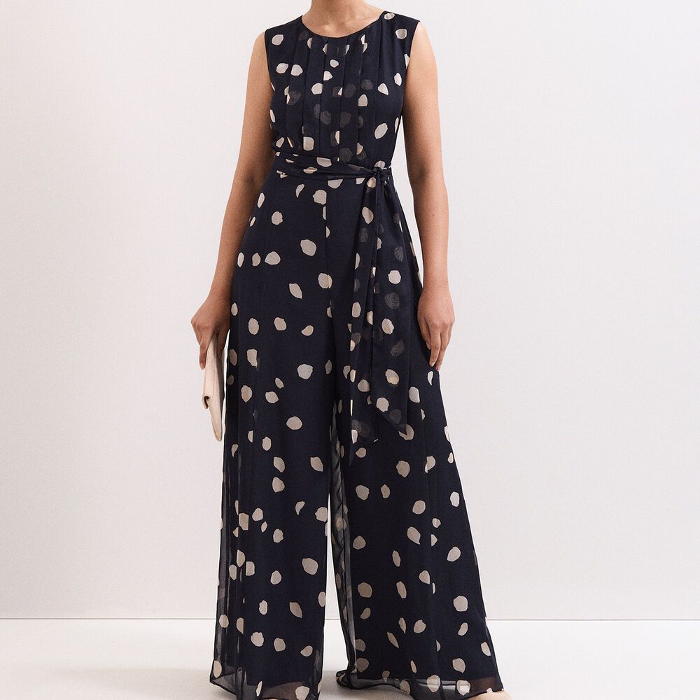 This playful polkadot piece will work if you're wondering what to wear to a wedding, for a day at the races or even a fancy dinner reservation. A jumpsuit can elongate a petite frame and be one of the most flattering pieces in your wardrobe. The all-in-one shape forms an unbroken vertical line, offering the illusion of extra height, whilst the wide-leg trousers work to elongate the legs.