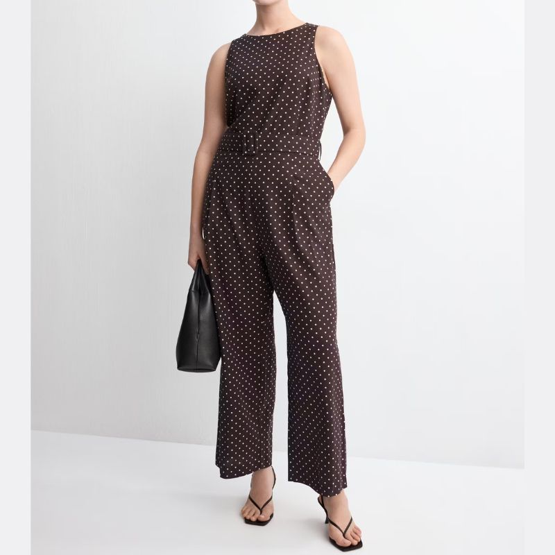 Mango is a hidden gem for plus-size fashion staples. This polka dot jumpsuit comes in sizes XXS-4XL, so there are plenty of size options, and it comes in a breathable linen fabric, making it ideal for the warmer season. We'd reccomend pairing this piece with some leather heeled sandals and adding a woven clutch bag.