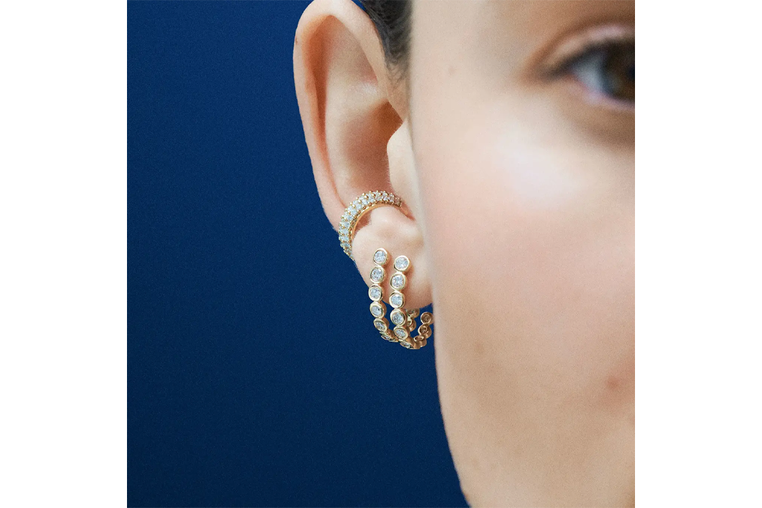H Samuel began in 1862, when Harriet Samuel transformed her family’s humble silversmith business into a mail-order company selling everything from jewellery to watches. Having always adapted to the times, its lab-grown collection continues the brand’s commitment to make luxury jewellery accessible to everyone. From a 0.25 carat lab grown diamond pendant necklace to a 0.50 carat eternity ring, and 0.50 carat oval and emerald cut hoop earrings, there’s plenty of choice for the lowest end of the budget.