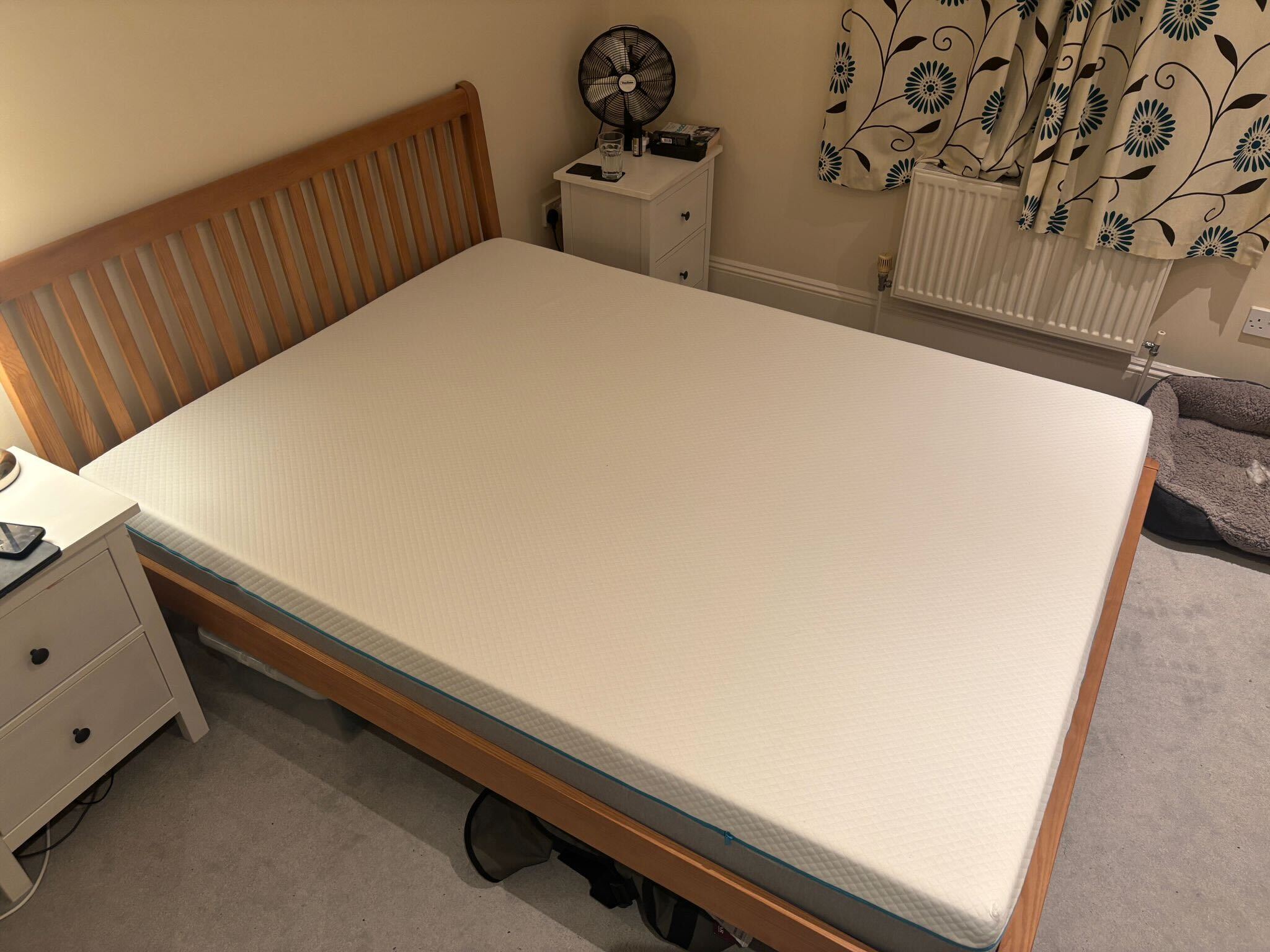 One thing to consider is that it’s deep (27cm) and heavy, which makes unpacking and positioning it a two-person job. However, once it’s on your bed frame, the sturdy build gives it a premium, durable feel. I’d recommend deep fitted sheets, not standard ones, for a better fit.