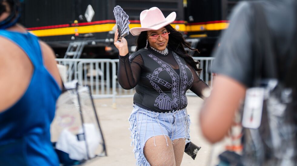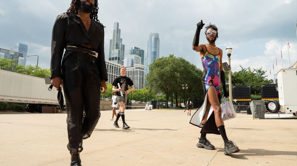 Donning 8-inch heels and a vibrant outfit she said was inspired by Elton John and a “cowboy on the moon,” Fai Thompson, of Portage, Indiana, strutted to the VIP entrance at Soldier Field ahead of the first of two sold out nights at Soldier Field for Beyonce’s Renaissance World Tour.