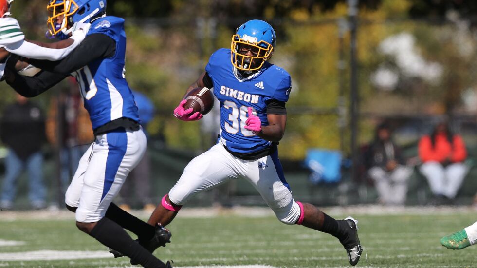 Simeon quarterback Keshaun Parker was 5 for 11 passing for 122 yards with a 50-yard touchdown pass to Cameron Ashley.