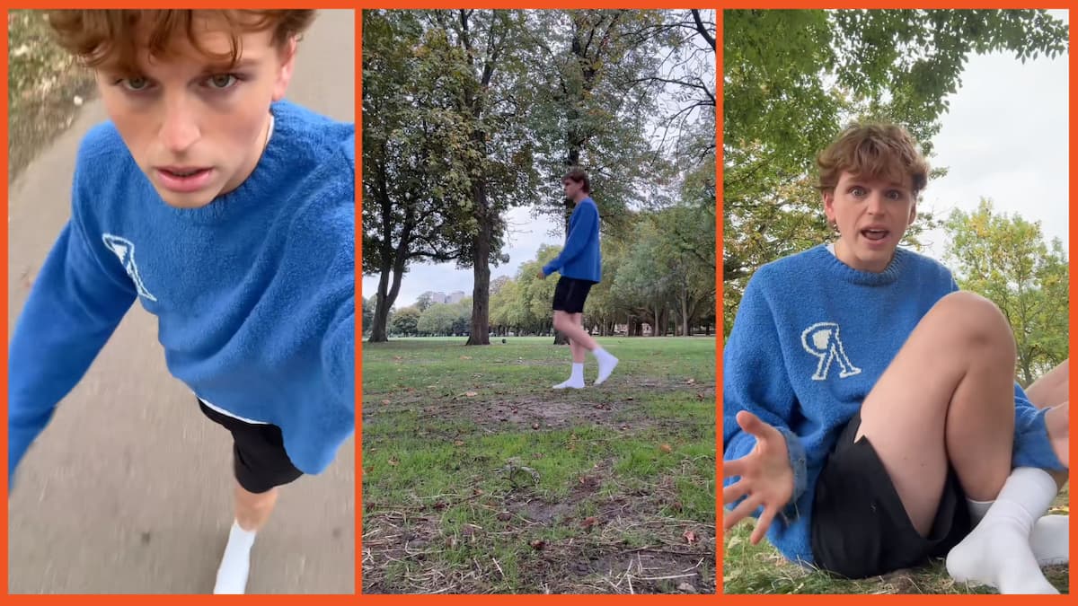 Either way, Daniel had to figure out a way home without his shoes anymore. After asking some strangers in the park if they had seen anyone walking away with his shoes (they hadn’t) he begins his long walk back. Recording himself walking through the park he’s able to mostly keep his spirits high, addressing the thief (in case they see the video), telling them “jokes on you, I bought those second hand so now you have third hand shoes, that’s stinky and cheap, that’s disgusting.”
