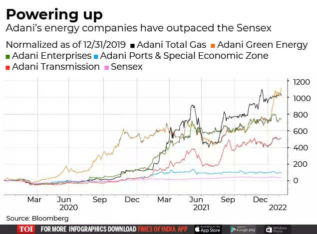 Shares of Adani Green and Adani Total Gas, a Mumbai-listed joint venture with the French firm, have rallied more than 1,000% since the beginning of 2020. Flagship Adani Enterprises has advanced more than 730%, Adani Transmission more than 500% and Adani Ports 95% over this period. The benchmark BSE sensex index has gained 40% by comparison.