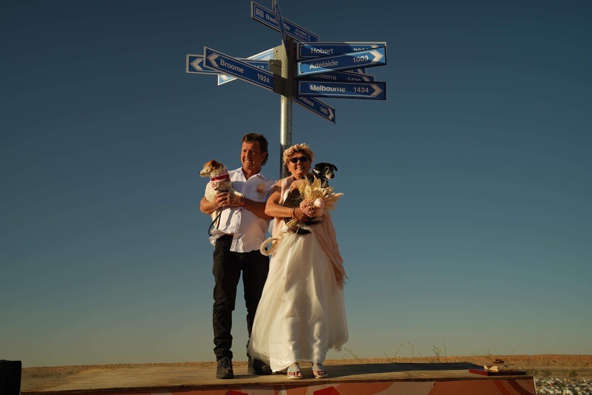 The loved-up pair said getting married at the isolated festival, 38 kilometres from Birdsville, was always part of the plan but there was an element of adventure to it.