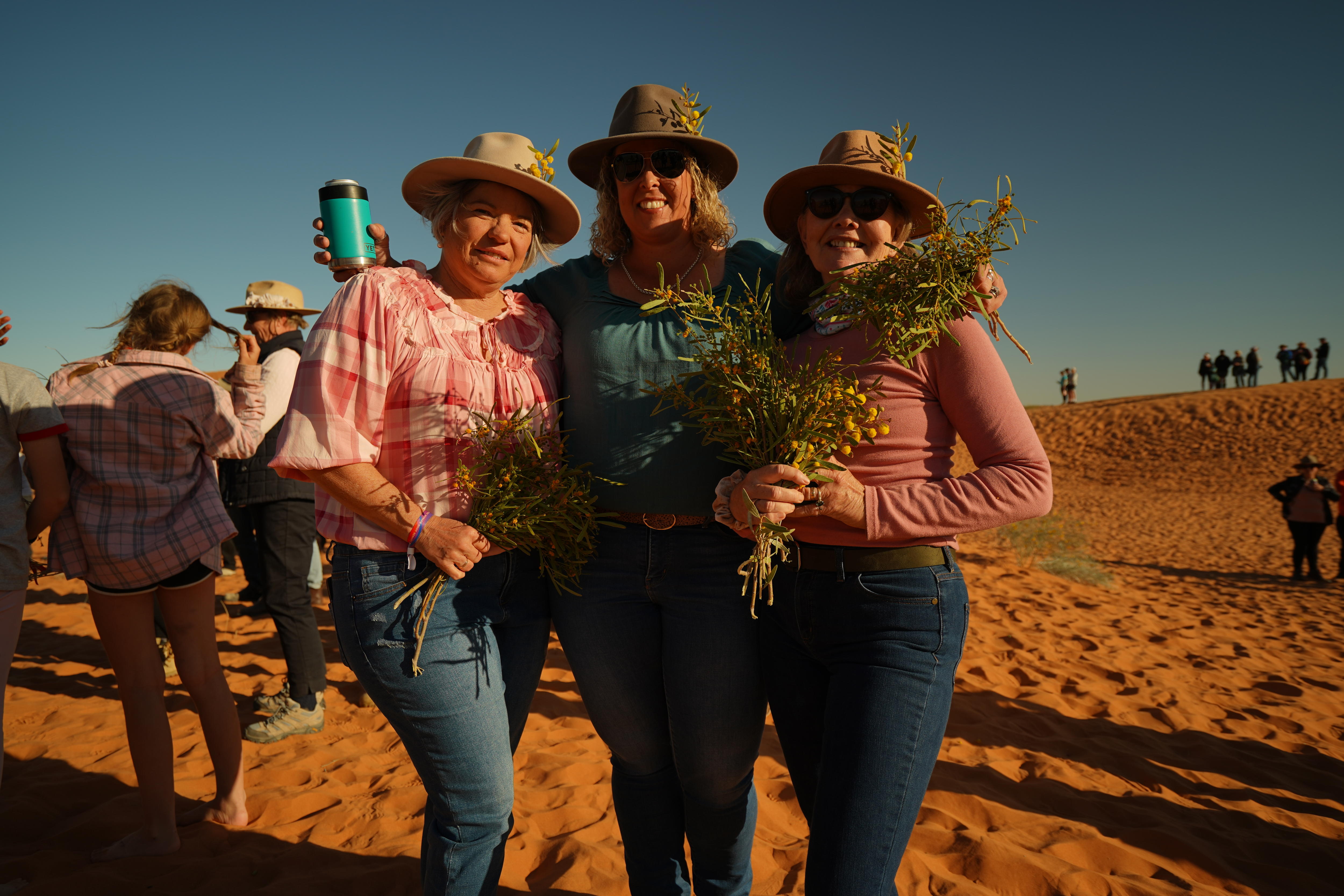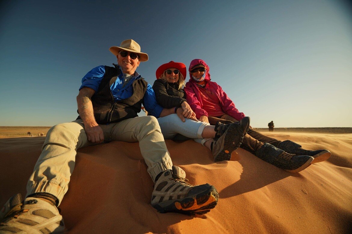 Hiking up the 40-metre Big Red sand dune in Munga-Thirri National Park was as much a physical challenge as it was emotional for the couple, who also towed their two tiny dogs to the event.