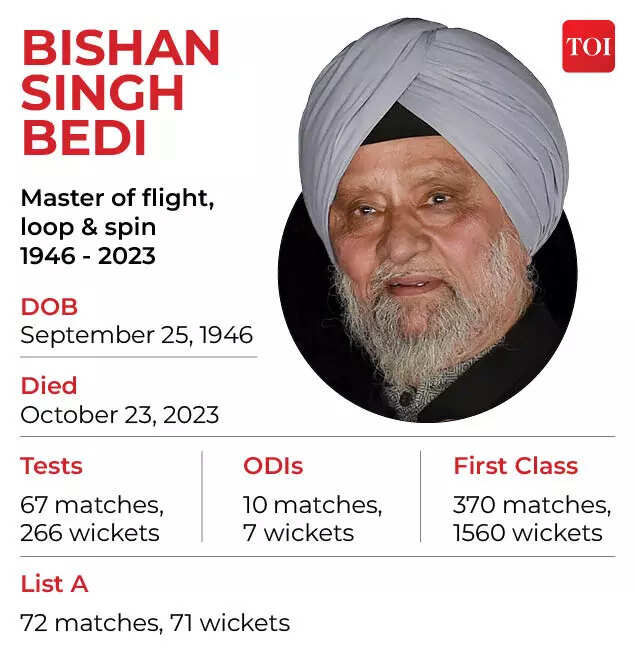NEW DELHI: One of India's finest cricketers and legendary left-arm spinner Bishan Singh Bedi breathed his last on October 23 and passed away at the age of 77 after a prolonged illness.