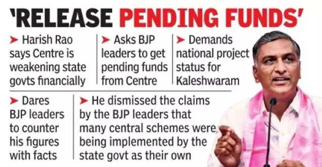 “The Centre owes Rs 7,180 crore to Telangana, including the arrears of 13th, 14th and 15th Finance Commissions, backward region grant for 2019-22, GST compensation and central-sponsored schemes,” Harish Rao said at a press conference on Saturday.