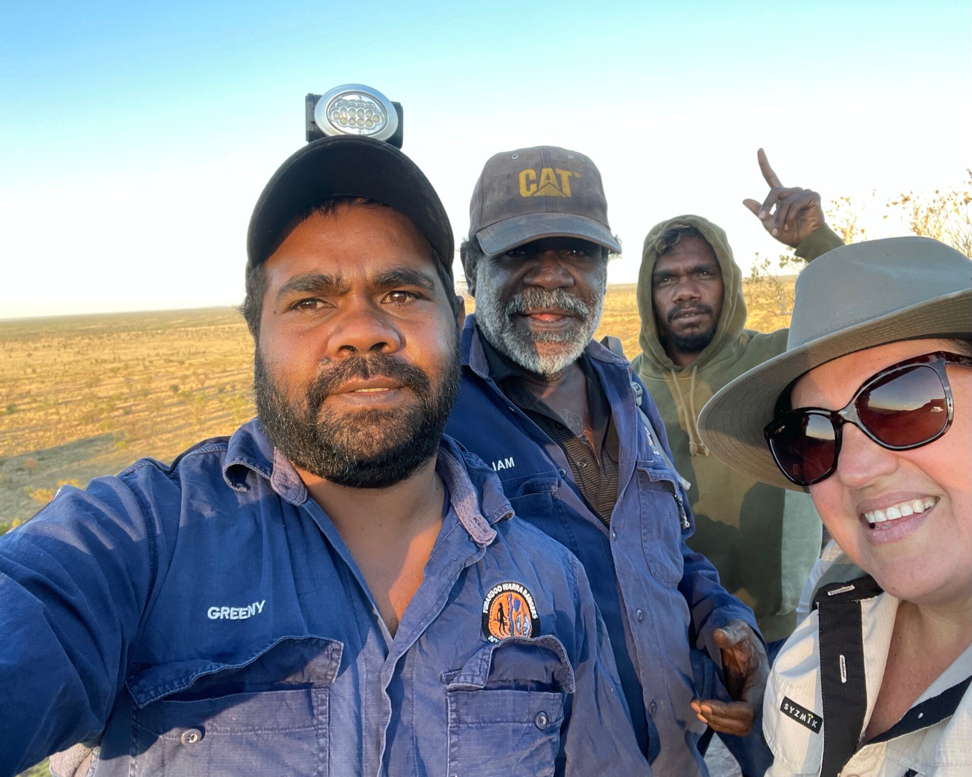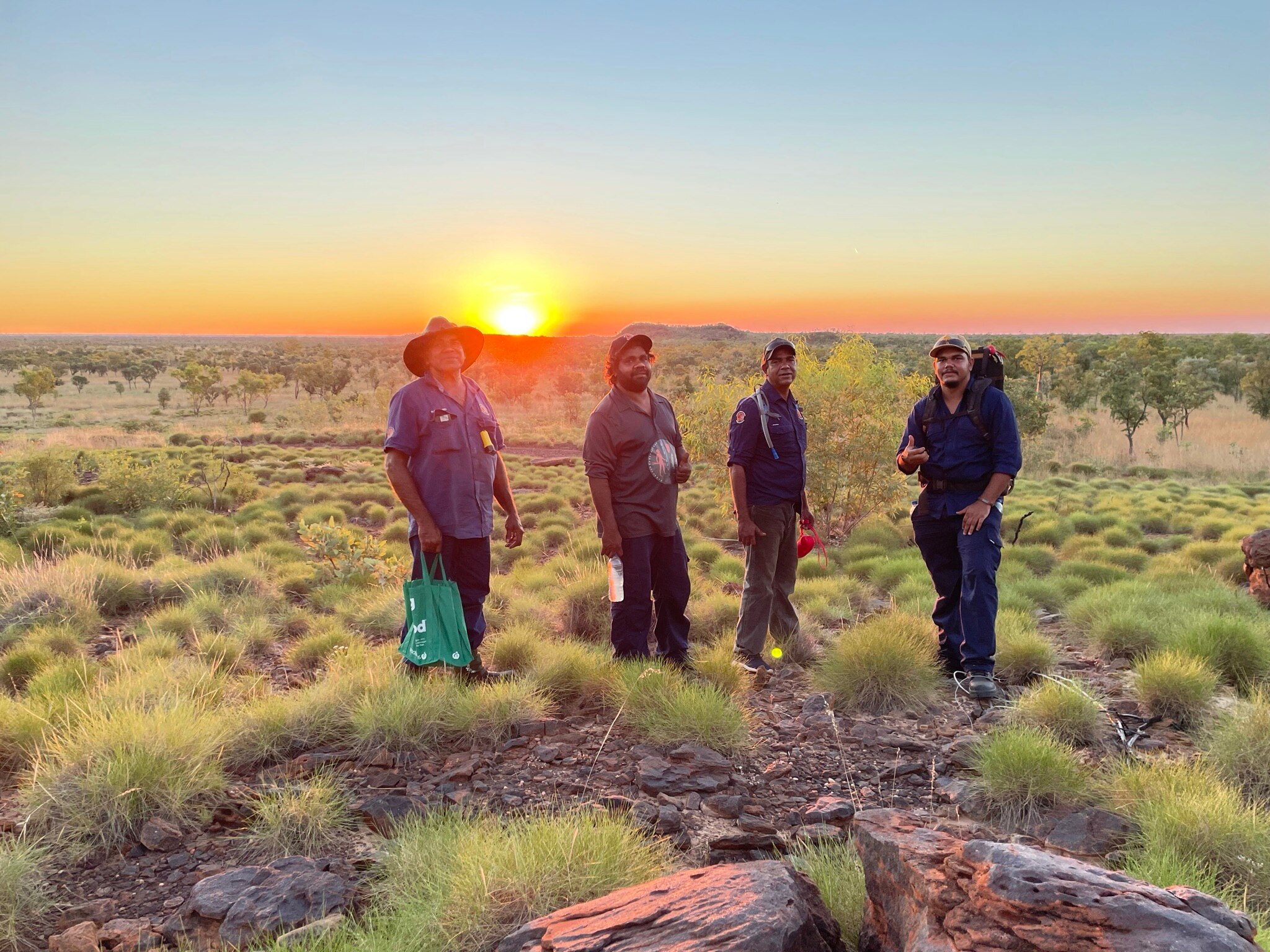 Nyikina Mangala Rangers Raymond Charles, Jeremiah Green, Albert Watson, and Shaquille Millindee working at the Erskine Range.  (Supplied: WWF-Australia )